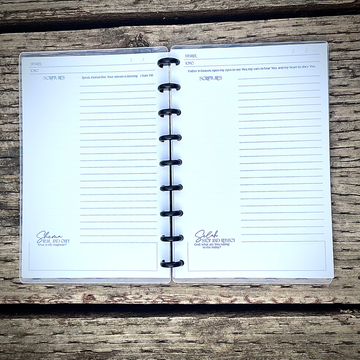 Writing on quality 80 lb. text-weight paper just feels good! Your notes won't bleed through, and because the pages are rearrangable, you can keep your sermon notebook organized the way you like it. You can also easily transfer pages to and from the Abiding in Jesus Planner. Say goodbye to carrying multiple notebooks to church!